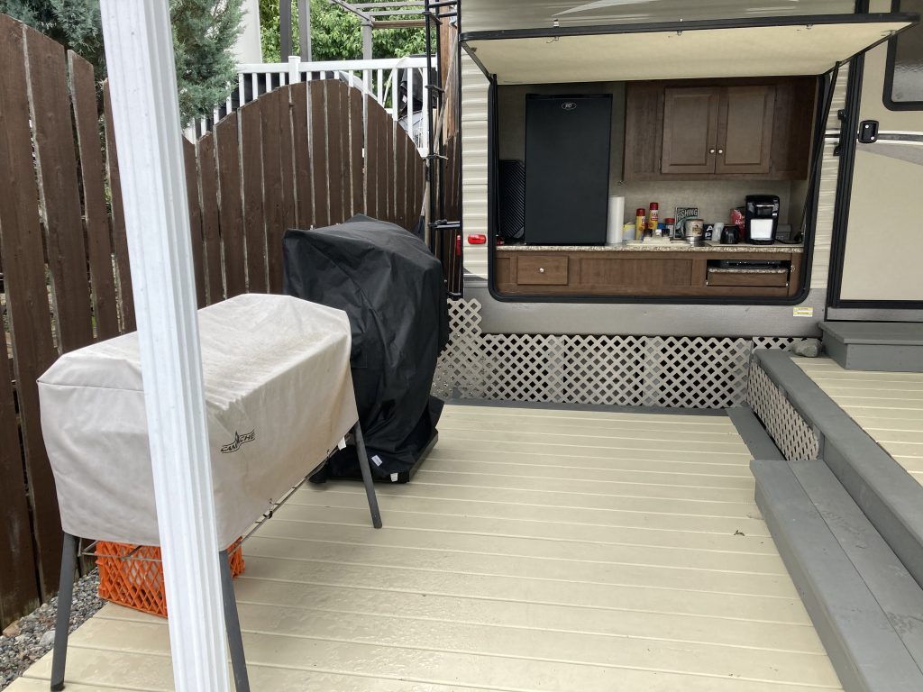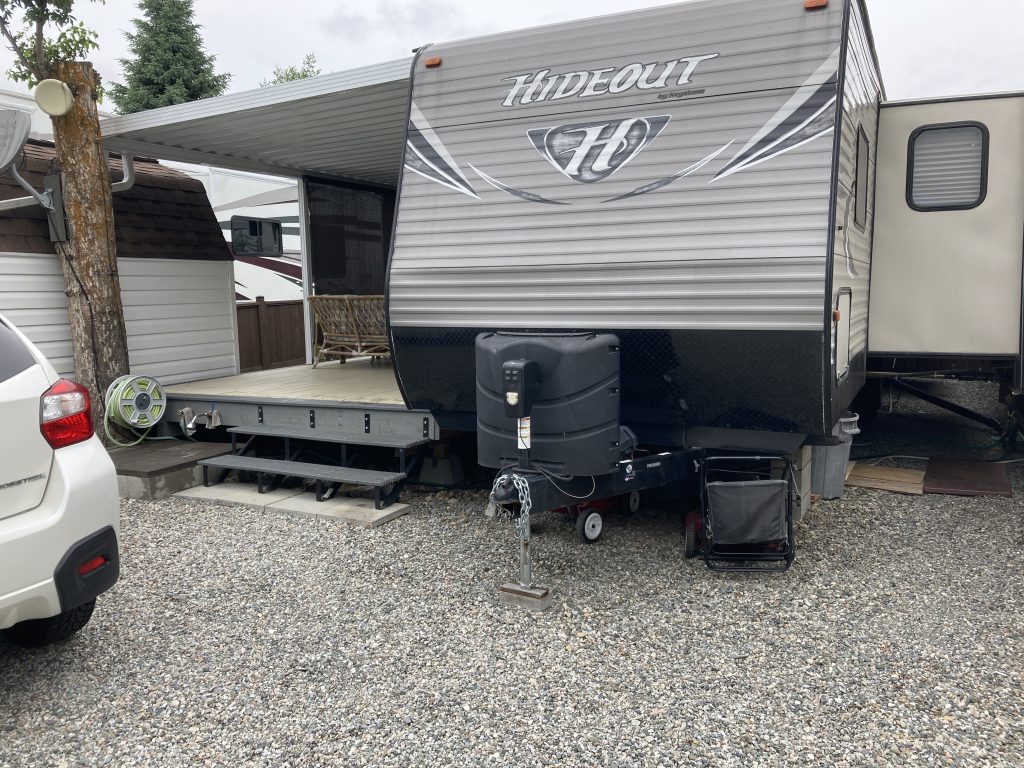 2016 Hideout Trailer (sleeps 10). This unit includes a Stove, Microwave, Fridge, Central Vac, TV, Stereo, Queen Bed, Hide-a-bed Sofa, Bunk Room, outside camp kitchen, and a 2nd outside door where guests can access the trailer’s bathroom from the large covered deck. There is also a foot wash, a large storage shed with an extra fridge, privacy fencing around most of the lot, privacy/sun shades on the deck, and underground sprinklers. The resort is open April thru October. Amenities include full-time management, shower/ laundry facility, rec hall, a boat launch, boat moorage, boat storage, tennis courts, off-leash dog area, 1100 sq feet of sandy beach, swim docks, and many owner run social activities. And when you aren’t using the place yourself, you can rent it out. All you need to add is your personal items, and it will be the perfect place for the whole family to come and enjoy all summer long and for years to come.